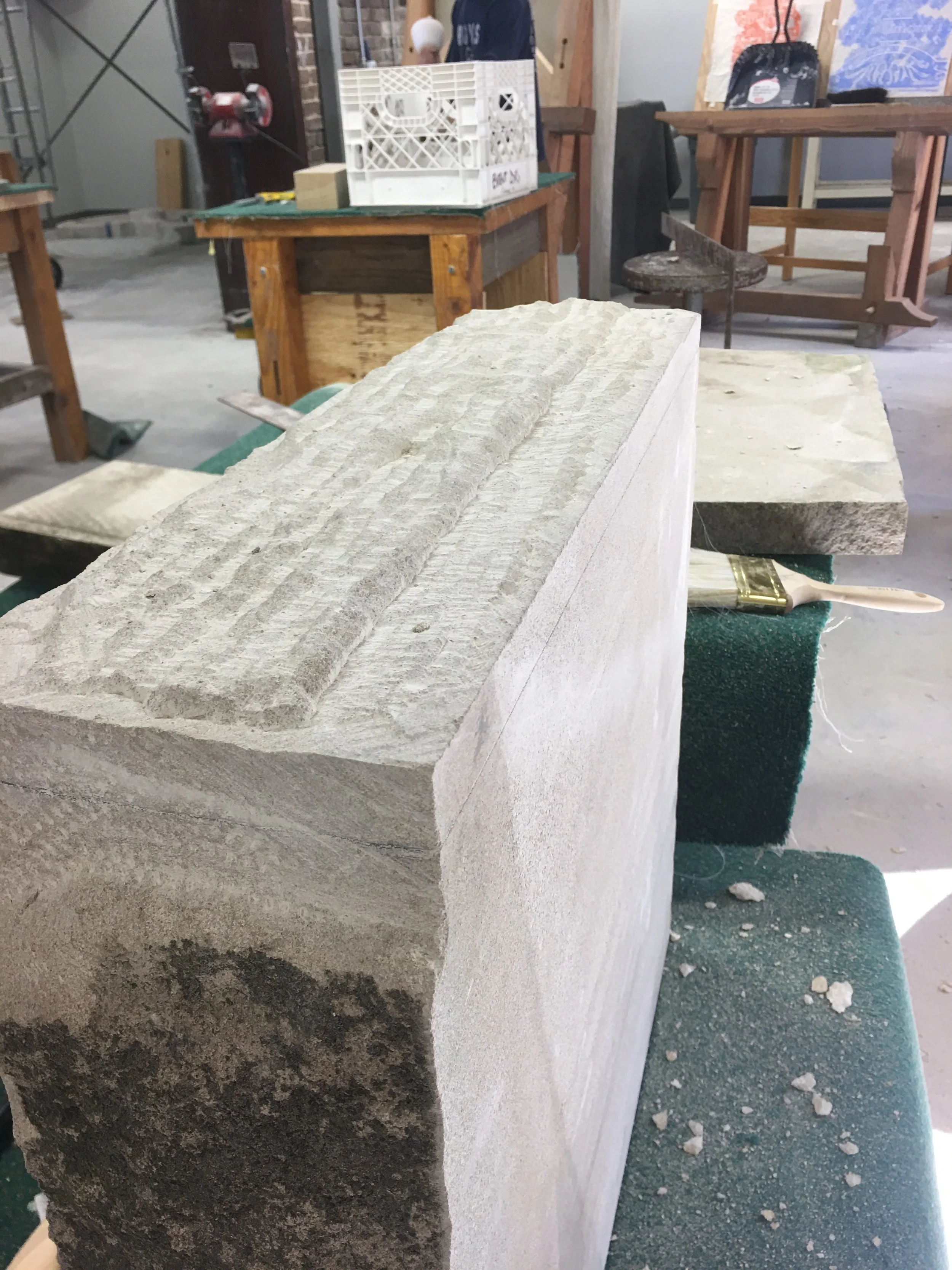 The stone has natural formations in it, some parts being hard and tough, and others being soft and easily fragmented. It is important to always be mindful of the bands that run through the stone, and adjust the pressure applied when carving to reflect it.