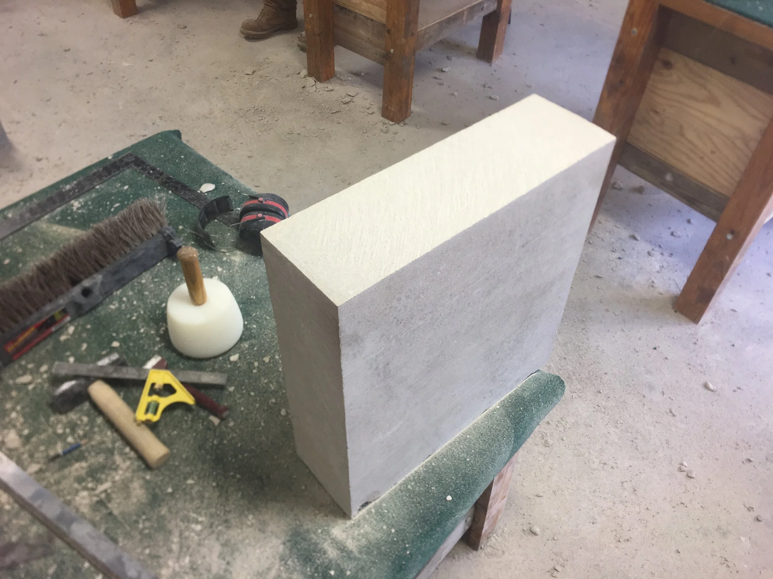 Once the stone is squared, we can then apply the template we made earlier, and set up the stones final shape.